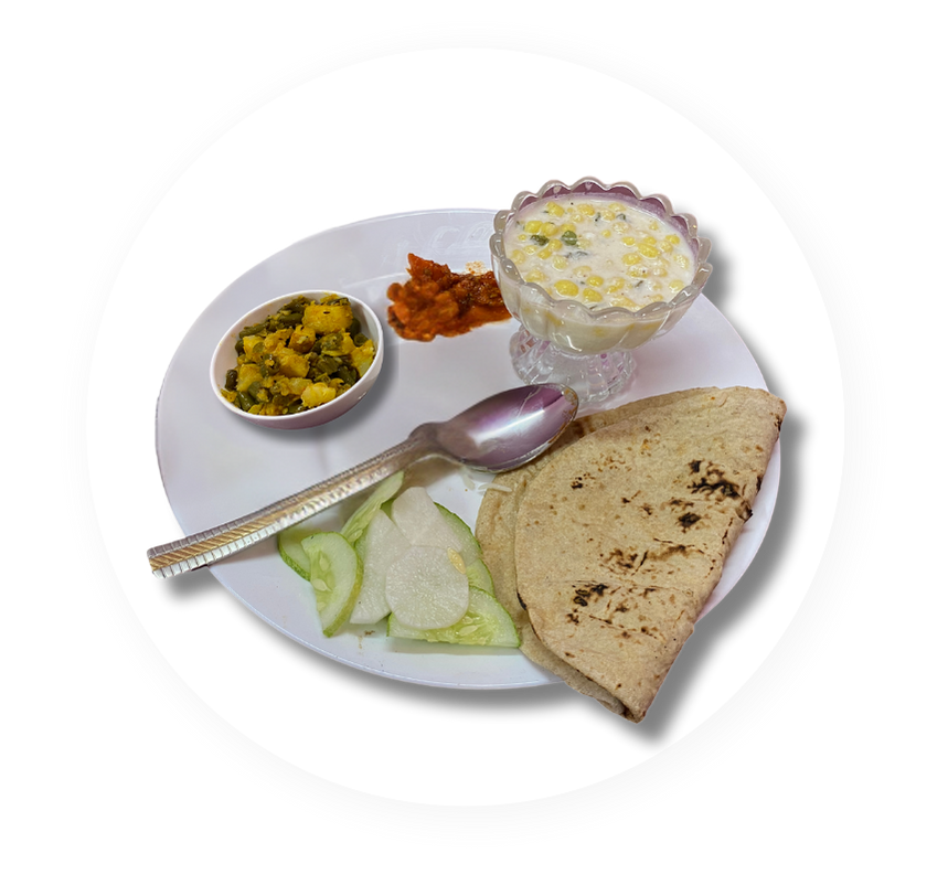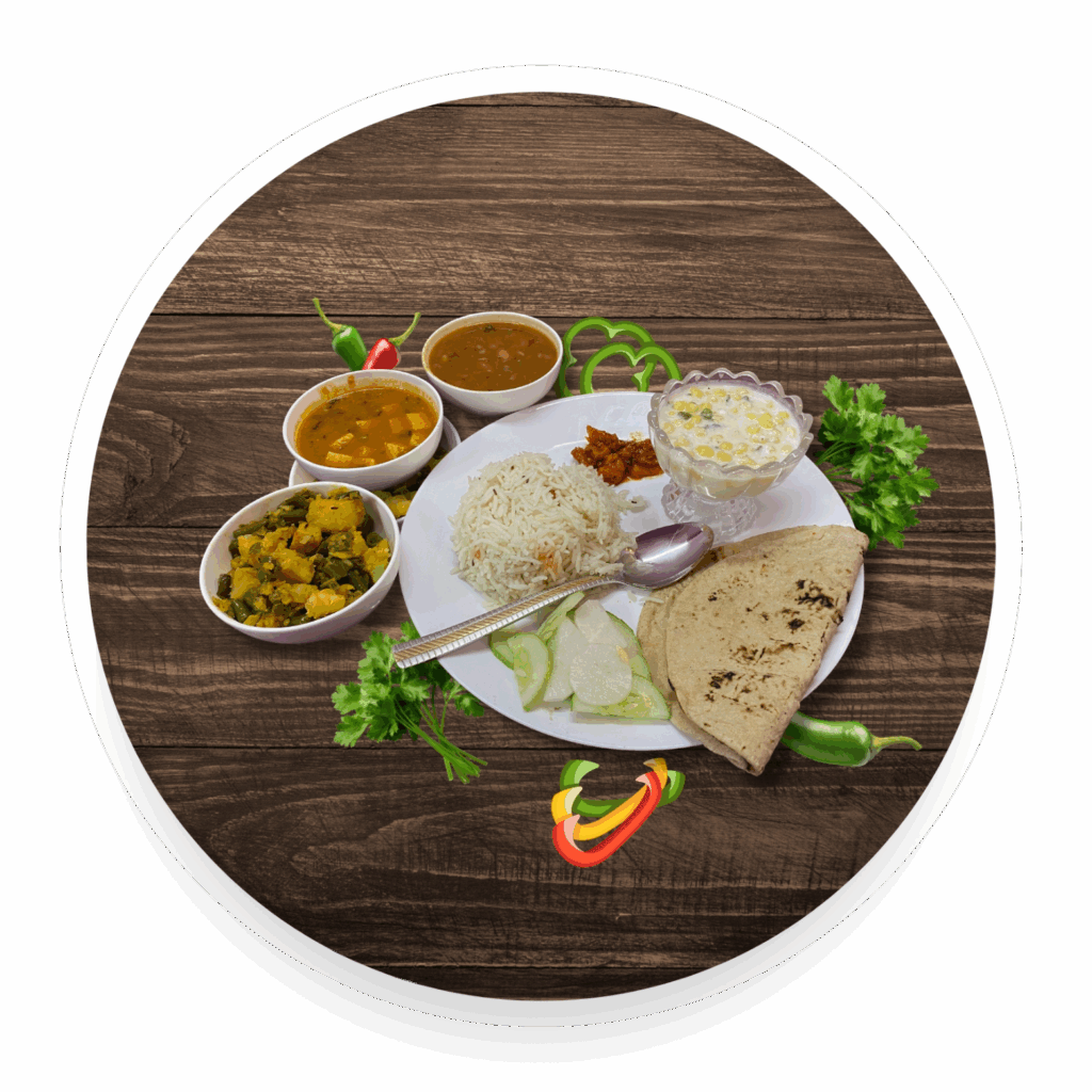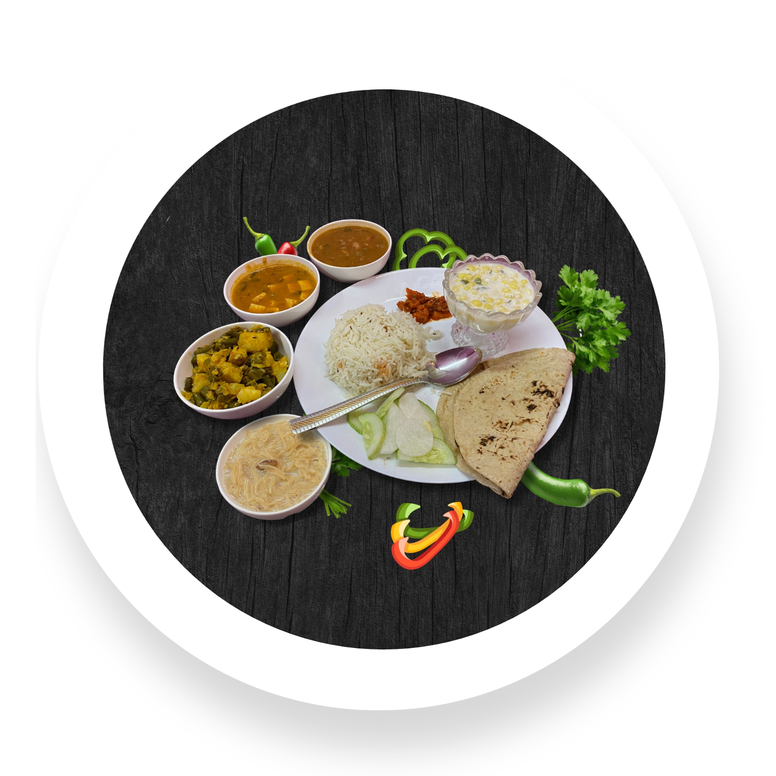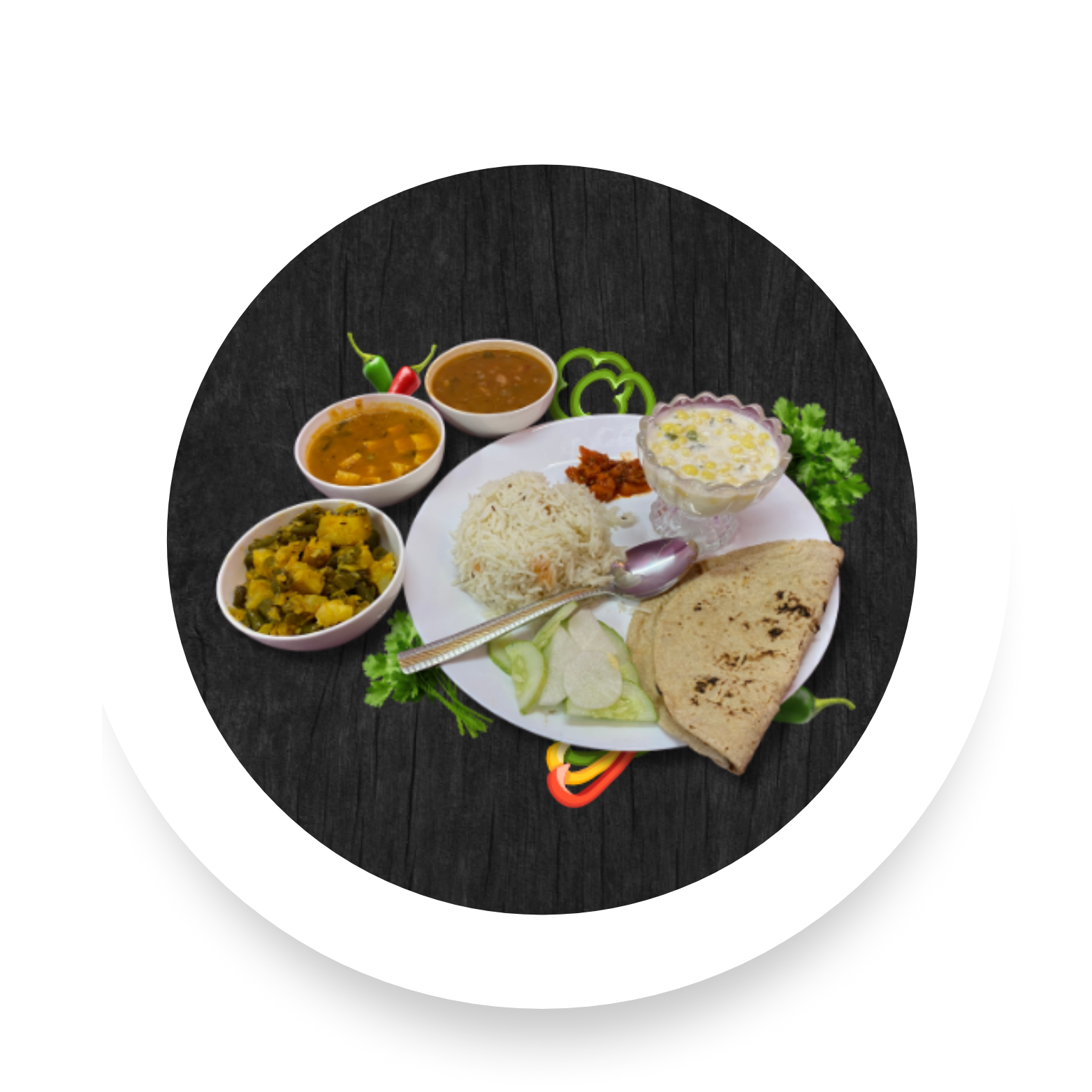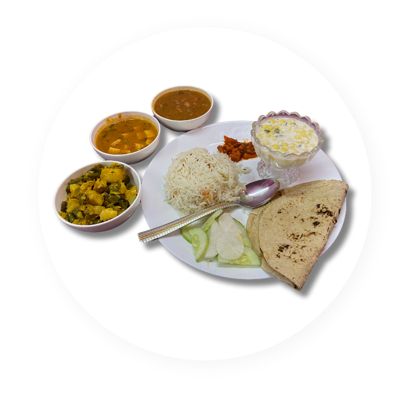 Simple, satisfying, and homely—this thali offers everyday comfort food with balanced nutrition and freshness.
