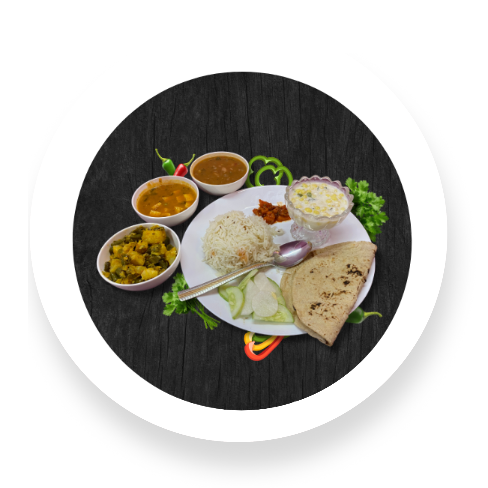 You will get a delightful spread of all Indian dishes Rs 300 : 800 (per thali) Roti/Puri Rice Dal Sabzi Raita Chutney Pickle Papad Sweet We also serve regional Thalis such as Punjabi, Gujarati, Rajasthani, South Indian, etc.